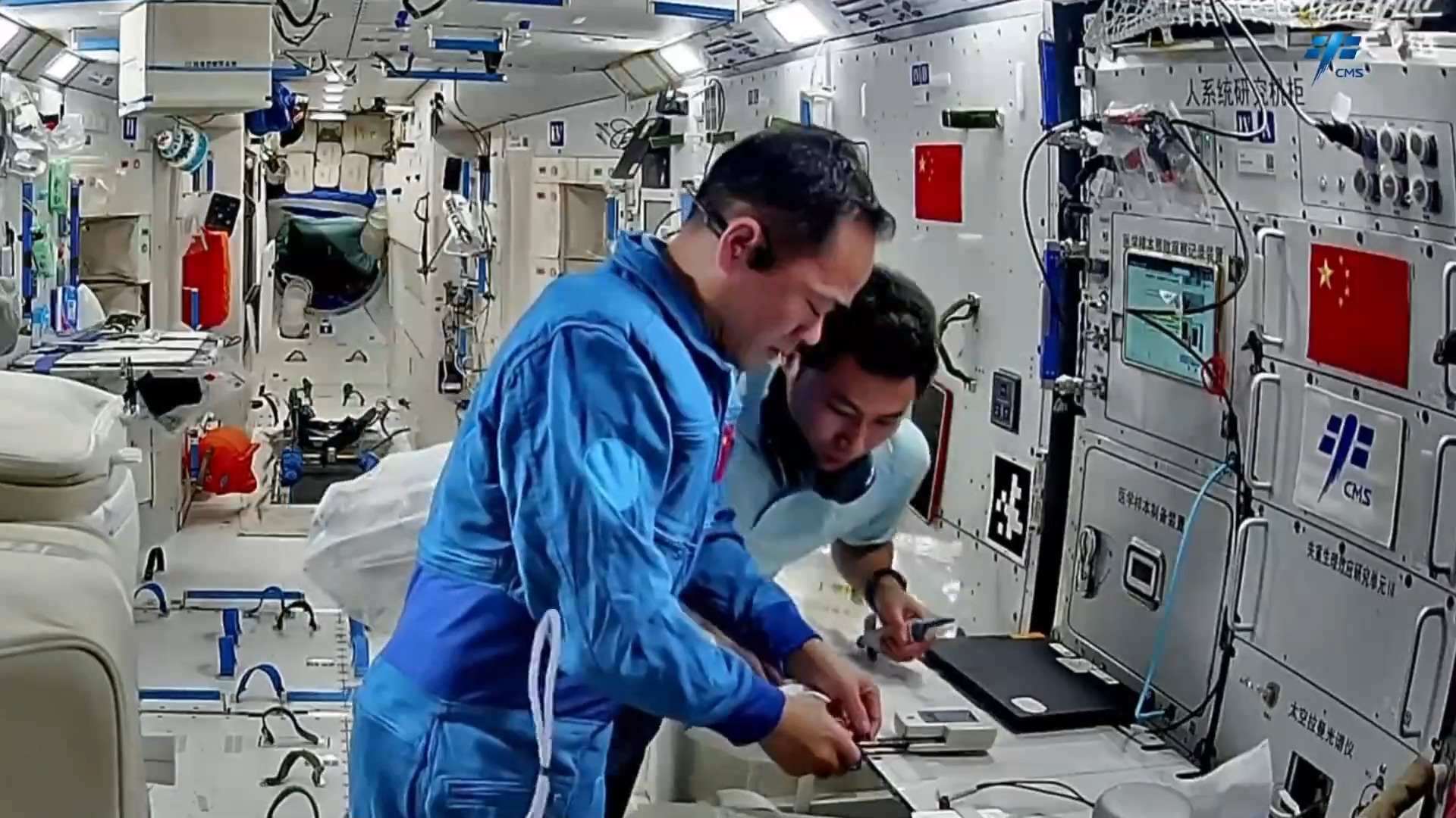 在設備檢查維護方面,乘組開展了低溫存儲裝置及-80℃空間冰箱巡視、環(huán)控氣瓶壓力檢查、再生生保系統(tǒng)設備維護等工作。