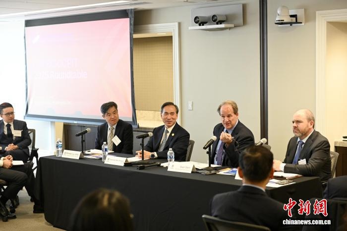 當(dāng)?shù)貢r間12月3日,華盛頓,中國貿(mào)促會組織中國企業(yè)家代表團與美中貿(mào)易全國委員會及其會員企業(yè)交流座談。中新社記者 陳孟統(tǒng) 攝