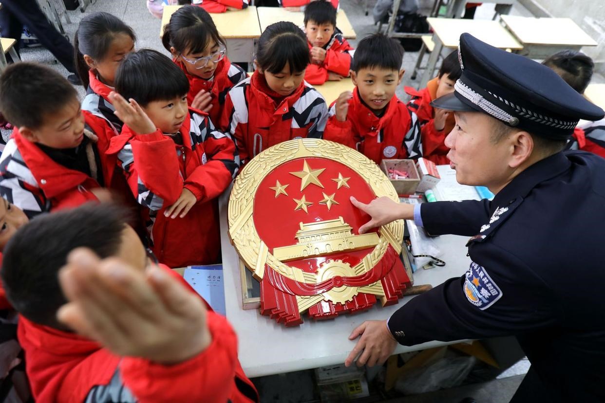 12月3日,安徽省馬鞍山市雨山區(qū)雨山實驗學校,司法干警給學生解讀憲法核心內(nèi)容。(工人日報通訊員 歐宗濤 攝)