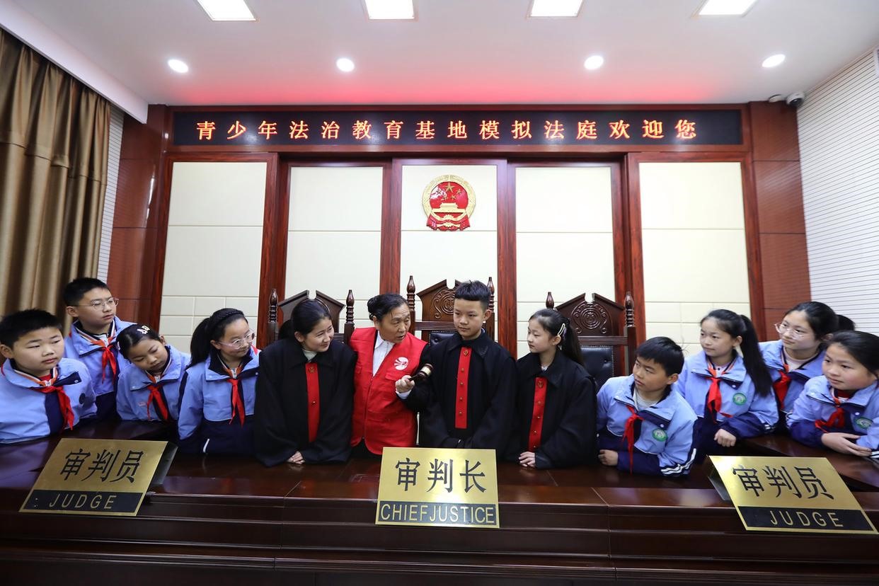 12月2日,孩子們在學習憲法知識、體驗“模擬法庭”,“沉浸式”感知法律的神圣與威嚴,在潛移默化中接受法治教育,爭做一個學法、懂法、守法的新時代好公民。(工人日報通訊員 李海濤 攝)