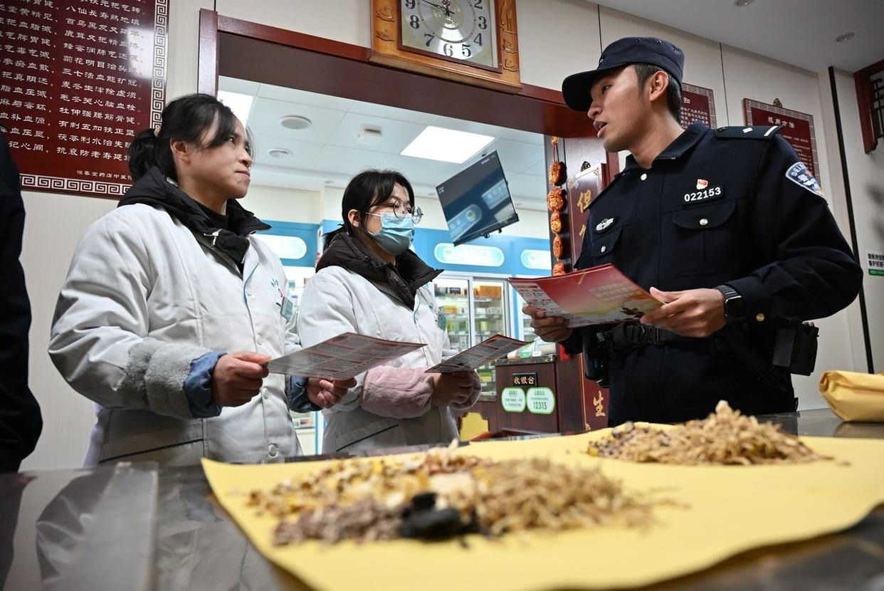 12月2日,安徽省馬鞍山市含山縣公安局林頭派出所聯(lián)合鎮(zhèn)司法所,將“法治課堂”搬進菜市場門口,向過往群眾講解《中華人民共和國憲法》《中華人民共和國民法典》等法律法規(guī)。(工人日報通訊員 馮善軍 攝)