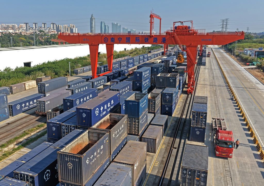 近日,記者從國鐵南寧局獲悉,2025年西部陸海新通道班列發(fā)運(yùn)集裝箱貨物142.5萬標(biāo)箱,同比增長47.6%,首次實現(xiàn)年發(fā)運(yùn)量突破百萬標(biāo)箱,再創(chuàng)歷史新高。新華社記者 周華 攝