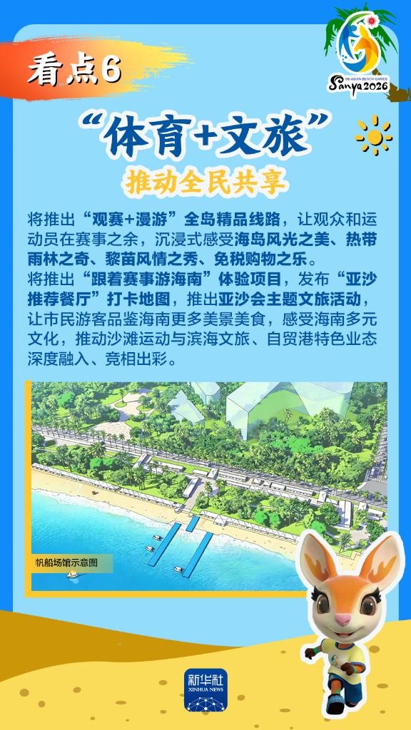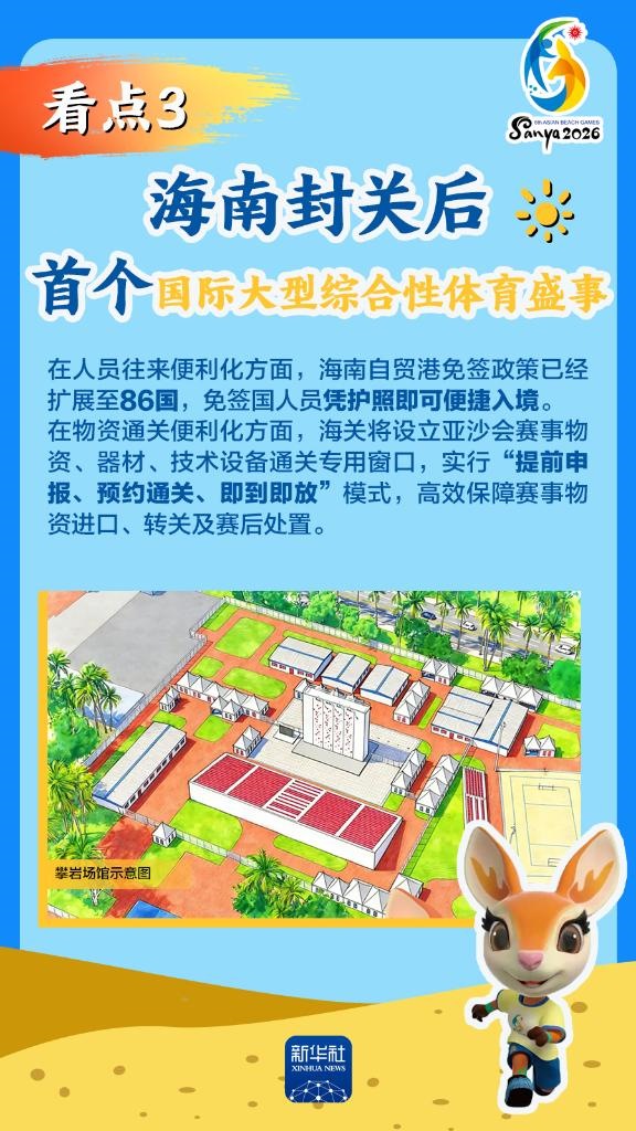 第六屆亞洲沙灘運(yùn)動(dòng)會(huì)(以下簡稱“亞沙會(huì)”)將于2026年4月22日至30日在海南三亞舉行,賽事歷時(shí)9天。作為海南自由貿(mào)易港封關(guān)運(yùn)作后迎來的首個(gè)國際大型綜合性體育盛事,亞沙會(huì)都有哪些看點(diǎn)?為何值得期待?國新辦12日發(fā)布會(huì)做了詳細(xì)介紹,一起來看。