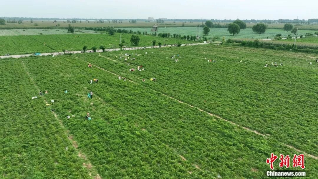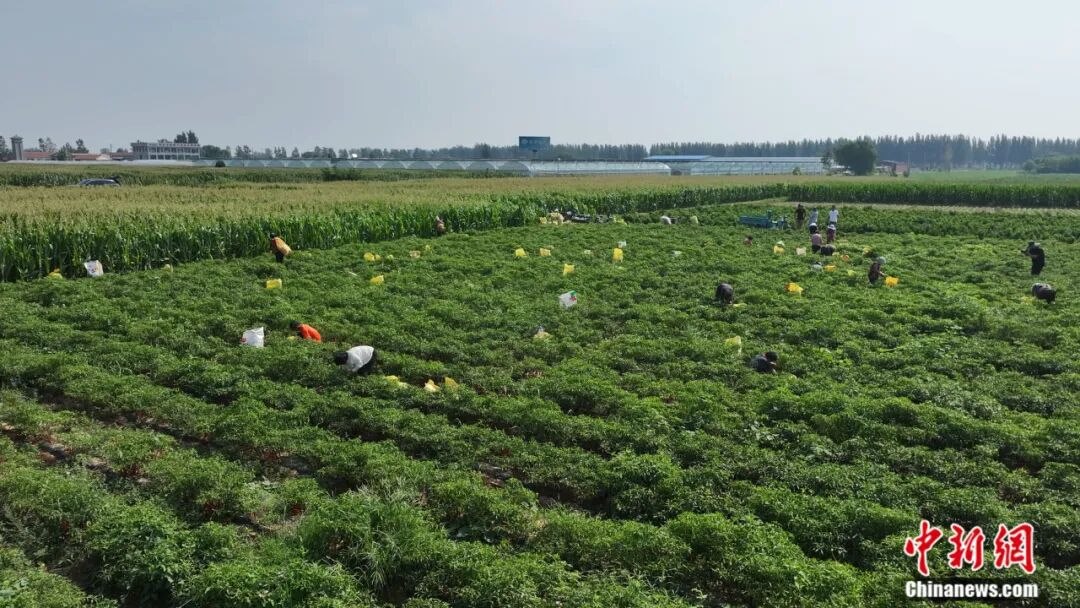冀南平原上,連片的辣椒田如紅色海洋翻涌——細長的羊角椒緊緊扒著枝頭蕩來蕩去,油亮的皮膚曬得通紅。