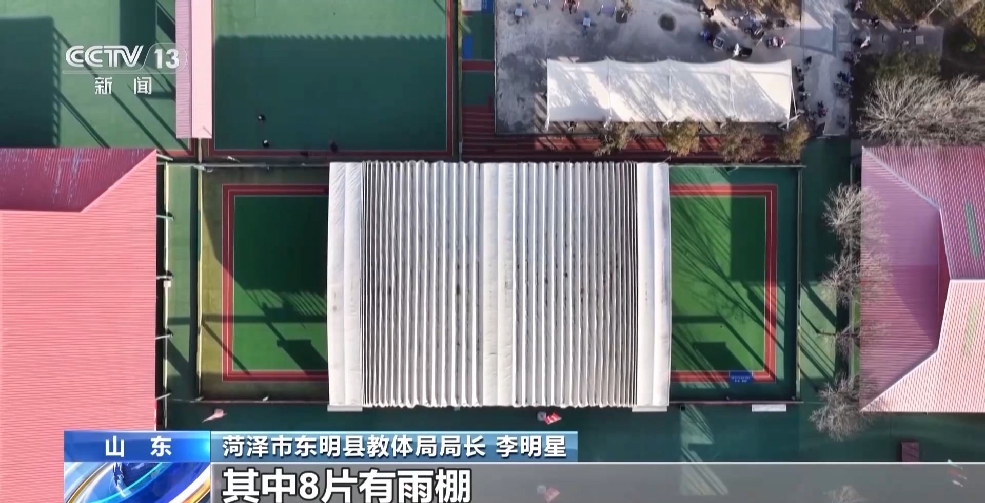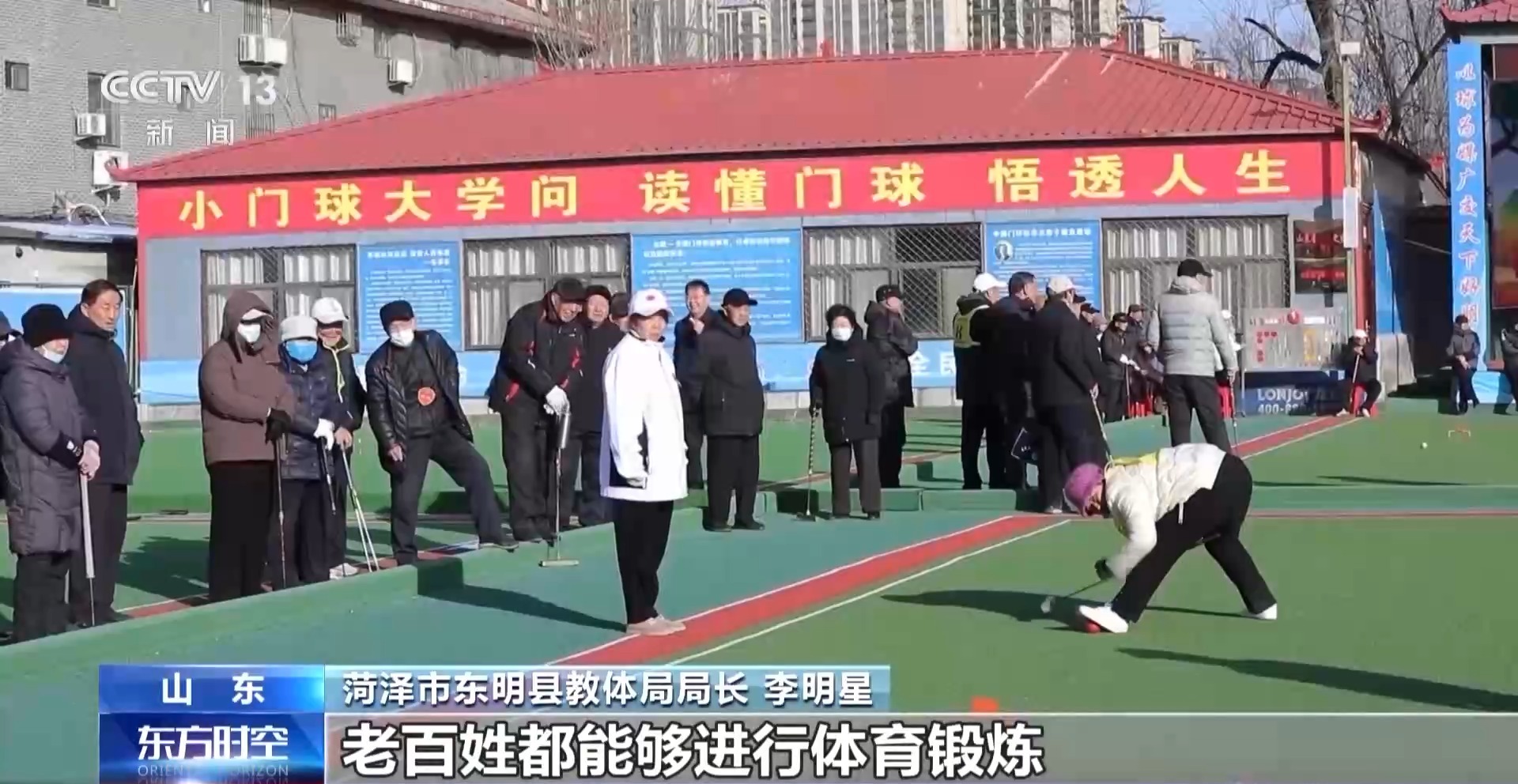 菏澤市東明縣教體局局長 李明星:17片連在一起的標(biāo)準(zhǔn)化門球場,其中8片有雨棚,下雨天、刮風(fēng)天,老百姓都能夠進(jìn)行體育鍛煉。