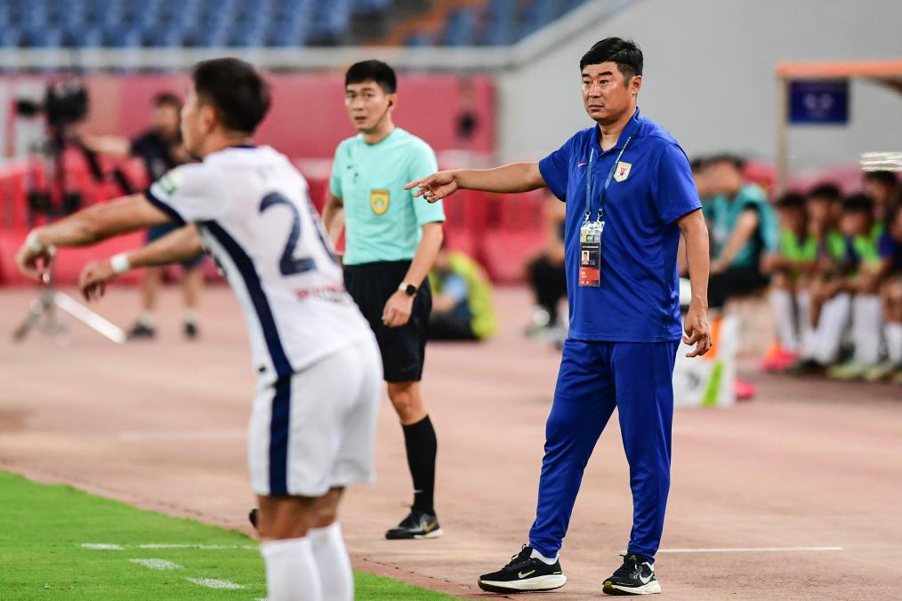 資料圖:韓鵬(右)在場邊指揮。新華社記者 朱崢 攝