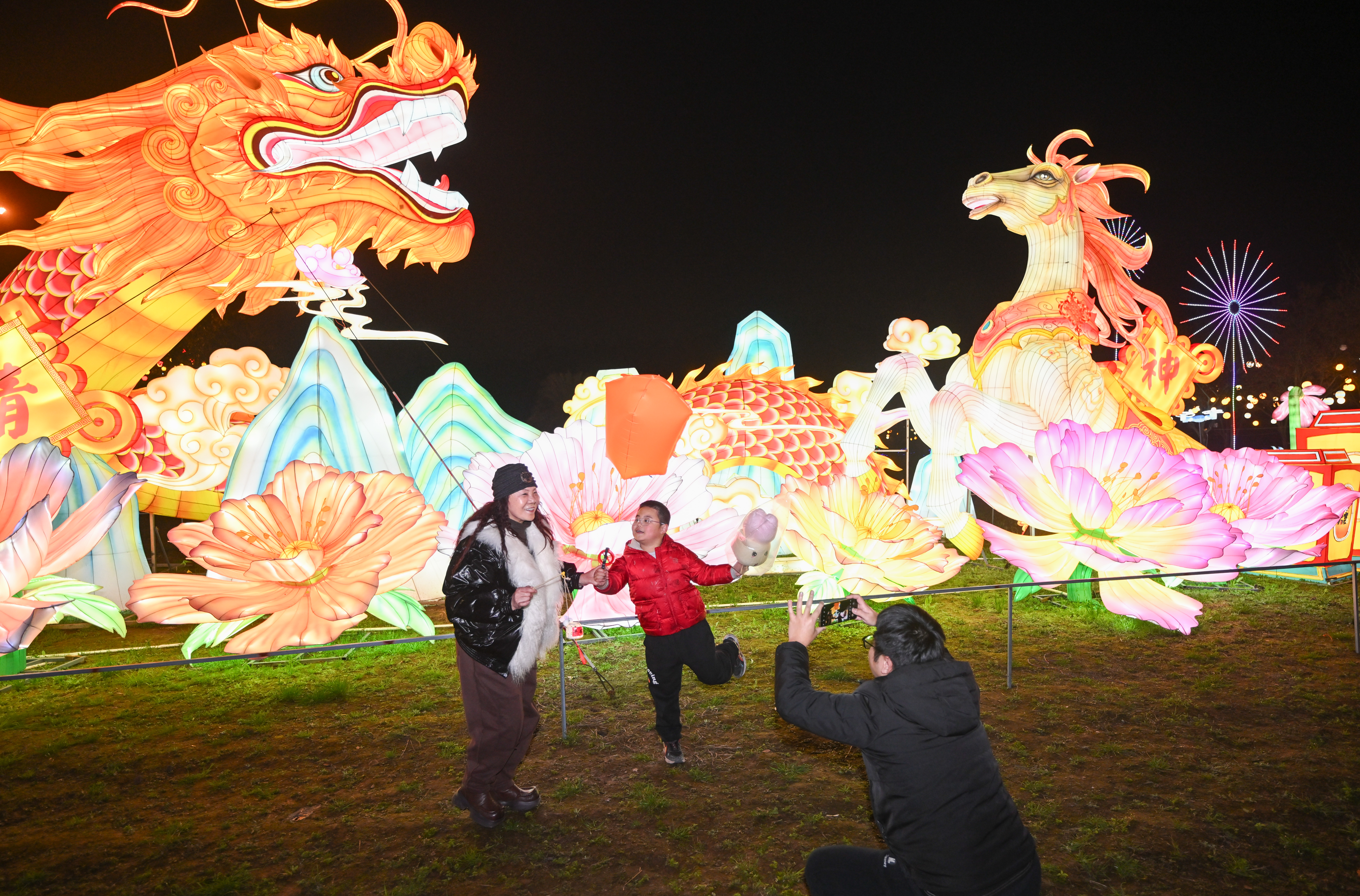 在銅梁,銅梁第十二屆龍燈藝術(shù)節(jié)主會(huì)場(chǎng),奇彩夢(mèng)園以“龍韻新燈 醉美銅梁”為主題進(jìn)行升級(jí),龍燈規(guī)模較去年翻倍,呈現(xiàn)4組大型主題花燈與43組中型特色燈組?;粼O(shè)計(jì)師賀志龍介紹,景區(qū)大門(mén)設(shè)計(jì)為“雙龍戲珠”,內(nèi)部燈組則劃分為新年傳統(tǒng)、非遺技藝、童風(fēng)童趣、奇幻未來(lái)四大板塊。這場(chǎng)燈會(huì)致力于為不同年齡階段人群打造相應(yīng)燈組與打卡點(diǎn),讓人們?cè)诔两焦庥翱臻g中,感受中華龍文化的魅力。