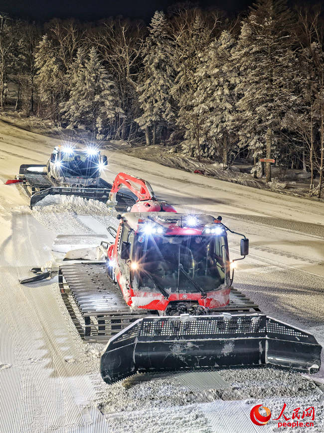 “壓完的‘面條雪’更平整、更松軟,滑起來體驗更好。”張斌解釋,如果雪道不壓,滑起來容易打滑,安全系數就會降低。