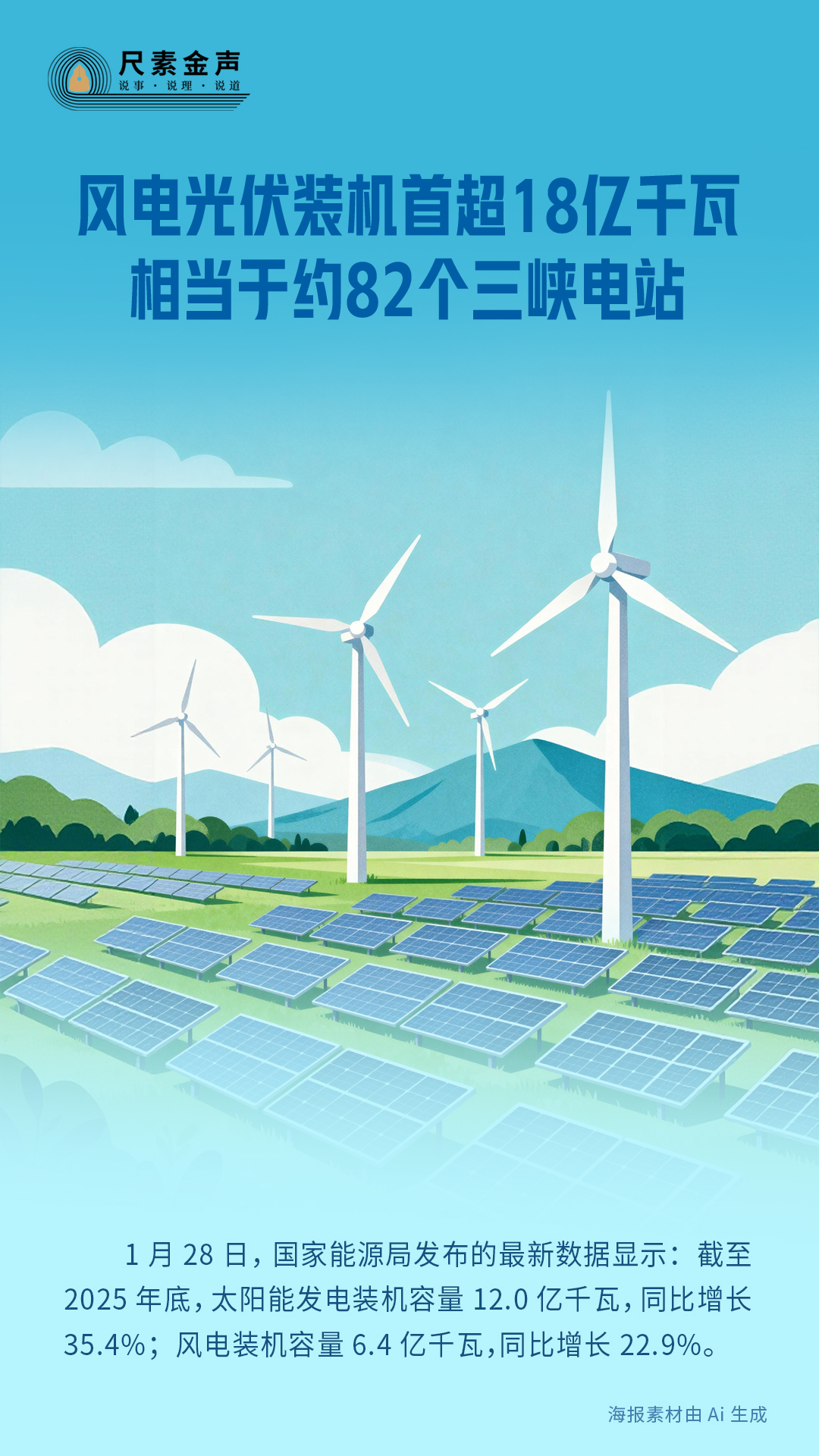 1月28日,國家能源局發(fā)布的最新數(shù)據(jù)顯示:截至2025年底,太陽能發(fā)電裝機容量12.0億千瓦,同比增長35.4%;風電裝機容量6.4億千瓦,同比增長22.9%。