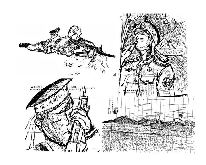 日記的封面印有金色大字“人民海軍”。翻開首頁,映入眼簾的是這樣一句話:“無名無利無悔,有情有義有祖國?!北咀永镞€夾著一幅手繪插畫——一名軍人正向軍艦莊嚴(yán)敬禮。日記中還記錄著這樣的心聲:“一個軍禮,一生托付,一句誓言,一生承諾!”字里行間,是一個青年對家國的赤誠與擔(dān)當(dāng)。