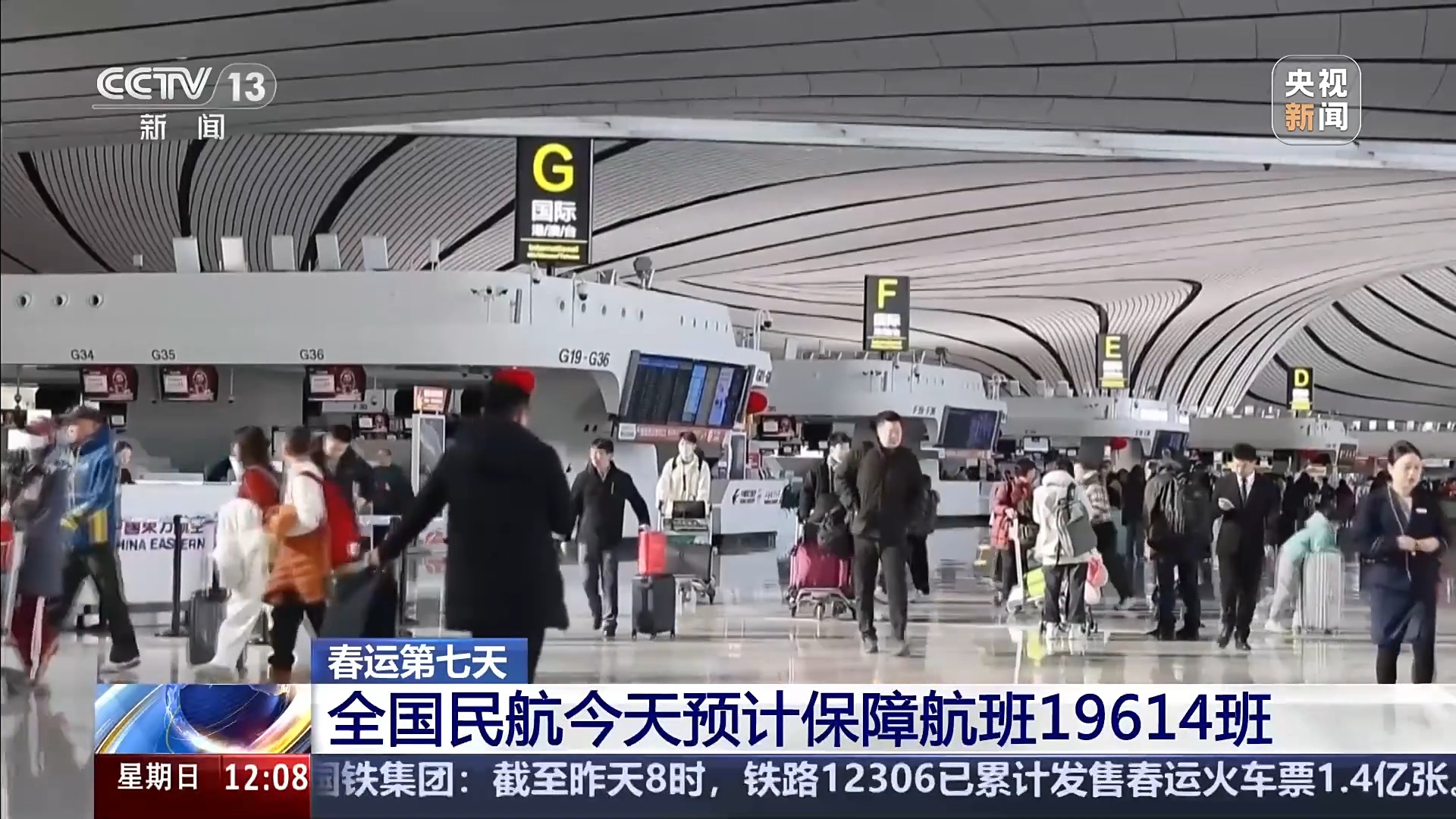全國民航今天預(yù)計保障航班19614班,可提供座位數(shù)297萬個,預(yù)計運(yùn)輸旅客239萬人次。