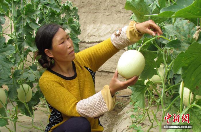 2月初,甘肅省武威市民勤縣種植戶查看玉菇甜瓜長勢。馬愛彬 攝