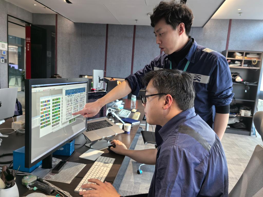 “我們剛上線了堆場(chǎng)智能化系統(tǒng),‘?dāng)?shù)字員工’幫助實(shí)現(xiàn)場(chǎng)橋自主調(diào)度與協(xié)同作業(yè)。”在天津港第二集裝箱碼頭有限公司數(shù)字實(shí)驗(yàn)室見到公司信息部副經(jīng)理班宏宇時(shí),他和同事正在討論新的優(yōu)化方案。電腦上,一排排算法程序正在試運(yùn)行。