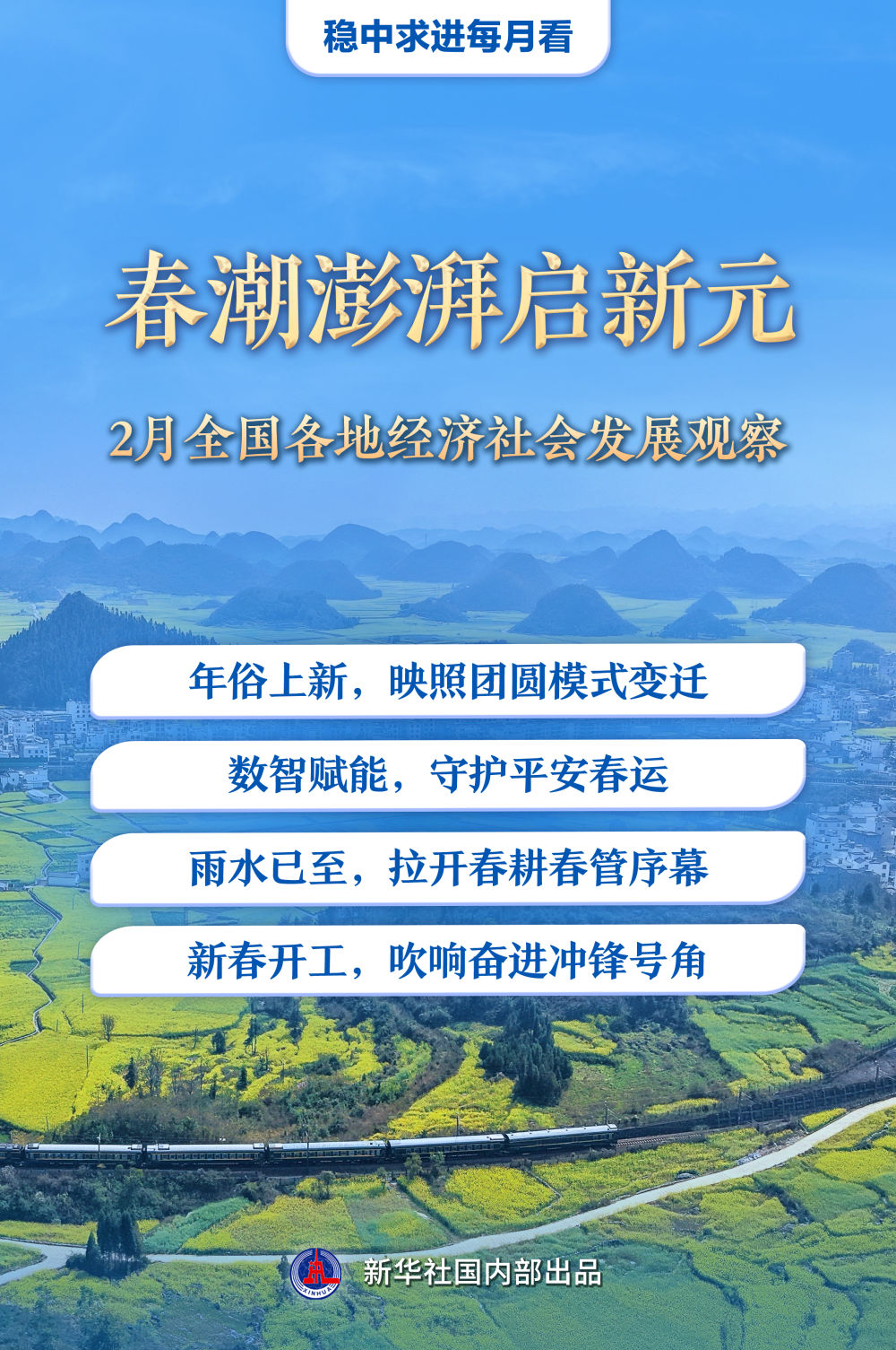 佳節(jié)歡騰,“異地過年”成流行趨勢;春運大潮,奏響“流動中國”的團(tuán)圓篇章;雨水時節(jié),春耕春播春管拉開序幕;新春開工,各地吹響奮進(jìn)號角……2月以來,全國各地經(jīng)濟(jì)社會發(fā)展呈現(xiàn)“春意盎然”的新圖景。
