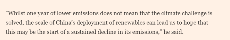 同時(shí),文章稱南安普頓大學(xué)的一位氣候科學(xué)家表示,這些數(shù)據(jù)令人鼓舞,因?yàn)樗鼈儽砻髦袊鴮G色能源的大規(guī)模投資開始轉(zhuǎn)化為可衡量的成果。“雖然一年的減排并不意味著氣候挑戰(zhàn)已經(jīng)解決,但中國在可再生能源方面的大規(guī)模發(fā)展讓我們有理由期待,這或許將是其排放量持續(xù)下降的開端?!?/p>