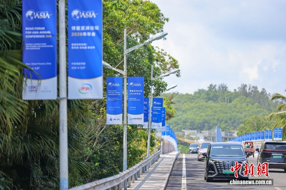 3月17日,博鰲亞洲論壇2026年年會(huì)各項(xiàng)籌備工作正有序推進(jìn),海南博鰲街頭的盛會(huì)氛圍日漸濃厚。以“塑造共同未來:新形勢、新機(jī)遇、新合作”為主題的博鰲亞洲論壇2026年年會(huì)將于3月24日至27日在海南博鰲召開。圖為博鰲培蘭橋道路兩側(cè),博鰲亞洲論壇2026年年會(huì)道旗整齊排列。中新社記者 駱云飛 攝