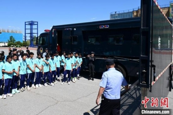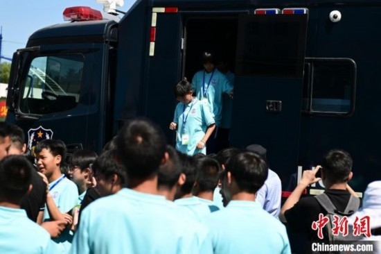 由北京市公安局支教民警組建并執(zhí)教的貴州黔西南州青少年校園足球男、女隊員共34人來到北京參加夏令營活動。今天,隊員們觀看特警訓(xùn)練及警犬演示,現(xiàn)場體驗(yàn)警械武器和警車等裝備使用,感受首都公安風(fēng)采。
