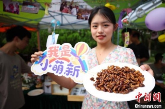 南京農業(yè)大學植保學院志愿者展示可食用的昆蟲迎接新生。泱波 攝