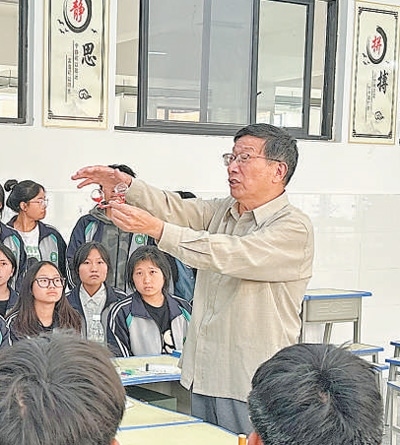 忻元華和支教的緣分,還得從2015年說(shuō)起。從寧波一所高校副校長(zhǎng)崗位上退休后,他發(fā)揮自動(dòng)化專業(yè)優(yōu)勢(shì),在中小學(xué)校、社區(qū)里做科普講座。2015年,抱著試一試的想法,忻元華參加了支教志愿者團(tuán)隊(duì)。此后的9年里,從湖南溆浦到甘肅隴西,再到四川涼山,忻元華帶著自制的科學(xué)教具,跋山涉水,把科學(xué)知識(shí)帶進(jìn)大山,點(diǎn)燃孩子們對(duì)科學(xué)的熱愛(ài)。