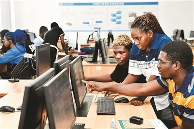2024年9月,加納學生在日照職業(yè)技術(shù)學院智慧建造中心進行建筑軟件繪圖練習。
