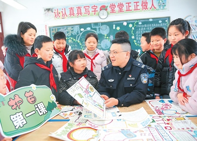 2月18日,在江蘇省如皋市下原鎮(zhèn)花園小學(xué),派出所民警通過(guò)知識(shí)普及、主題手抄報(bào)等形式,引導(dǎo)小學(xué)生科學(xué)、文明、安全上網(wǎng)。