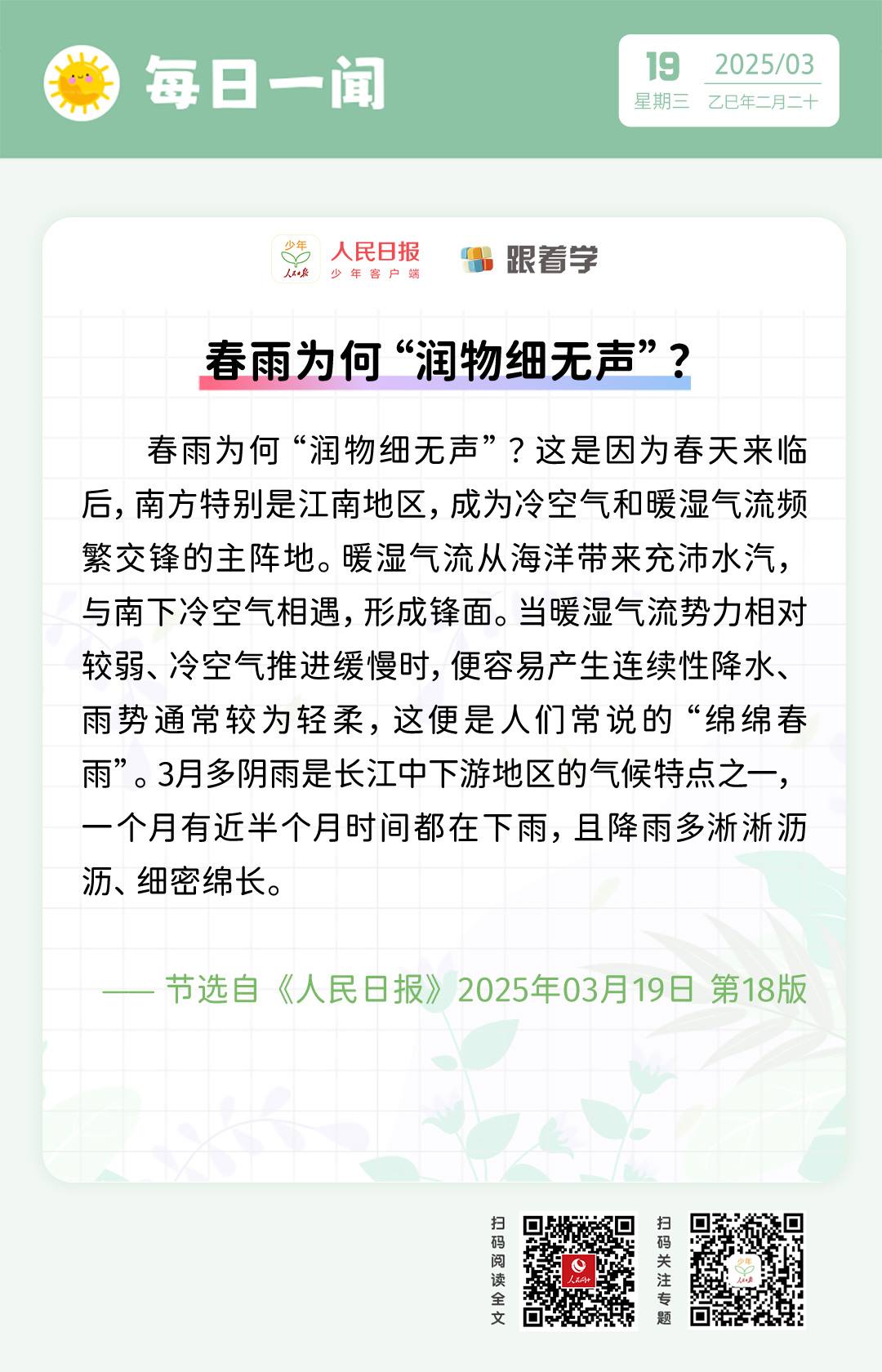 每日一聞丨春雨為何“潤(rùn)物細(xì)無(wú)聲”?
