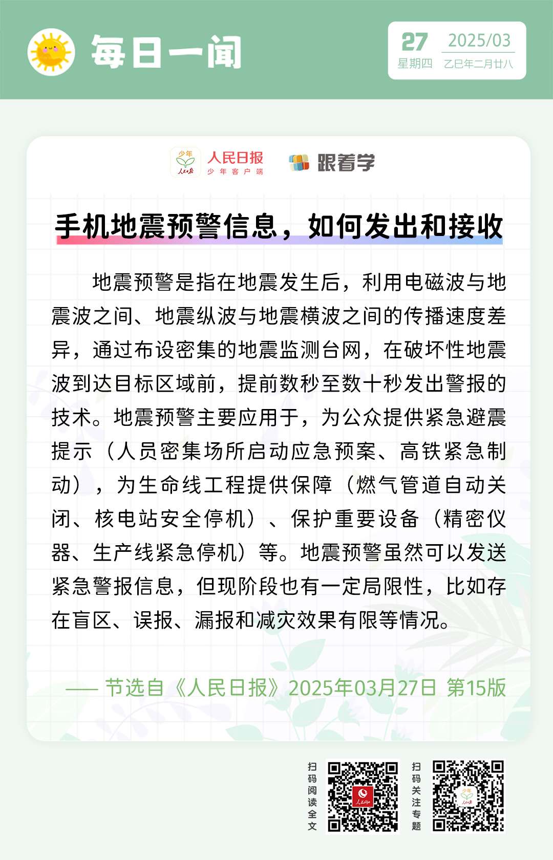 每日一聞丨手機地震預(yù)警信息,如何發(fā)出和接收