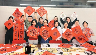 書畫社推動了中國文化在校園里的傳播。秦思涵說:“今年除夕夜,我們在學(xué)校擺攤賣春聯(lián)時(shí)發(fā)生了一件事情。一名女生問我,能否為她和她的室友們寫一副春聯(lián),里面包含她們的中文名字。有一名女孩不知道自己中文名字叫什么。她是一名扇舞舞者,我想了很久,為她起了名字‘葉舞翎’,并將其融入了春聯(lián)祝福。春聯(lián)寫好后,我們每個(gè)人都很開心。這樣的小事還有很多,越來越多人對我們的文化感興趣?!?/p>