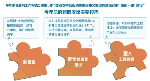 今年《政府工作報告》首次提出重點支持“兩新一重”建設(shè),即加強(qiáng)新型基礎(chǔ)設(shè)施建設(shè),加強(qiáng)新型城鎮(zhèn)化建設(shè);加強(qiáng)交通、水利等重大工程建設(shè)。