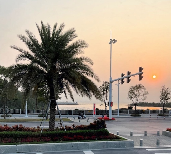 人民網(wǎng)東莞2月22日電 (記者趙雯 薛艷艷)濱海驛站坐落于廣東省東莞市濱海灣新區(qū),是東莞濱海長廊首個建成的重要節(jié)點,緊靠海岸線,南臨前海,隔海眺望南沙自貿(mào)區(qū)、中山翠亨新區(qū)。立于驛臺前,海風習習拂來,海天一線,日落降臨,浮光躍金。濱海驛站周邊建有廣場平臺、自行車道、沿海步道和園林綠化。濱海灣新區(qū)未來規(guī)劃建設一條長約40余公里的濱海長廊,以“運動廊+人文鏈+活力岸”為建設目標,打造生態(tài)海堤,不僅為游客提供親水體驗,同時也為鳥類、兩棲類動物提供生境及遷徙通廊。