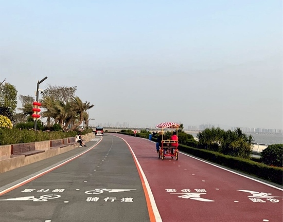 游人在濱海長廊游玩。人民網(wǎng)記者 趙雯攝