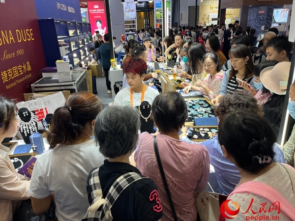 參觀者在第三屆消博會(huì)現(xiàn)場(chǎng)選購(gòu)商品。人民網(wǎng)記者 張力洋攝