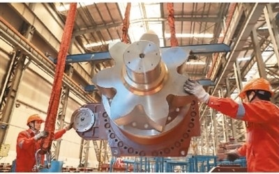 今年以來(lái),上海振華重工集團(tuán)(南通)傳動(dòng)機(jī)械有限公司銷售火爆、生產(chǎn)繁忙。1至4月,公司實(shí)現(xiàn)新簽合同額超5億元,完成營(yíng)業(yè)額5.2億元,同比增長(zhǎng)近40%,完成利潤(rùn)同比增長(zhǎng)70%。圖為工作人員在該企業(yè)裝配車間忙碌。許叢軍攝(人民視覺(jué))