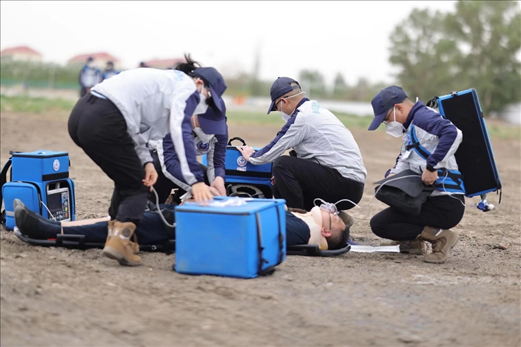 他們首先將模擬航天員抬到鏟式擔(dān)架上,迅速作出病情判斷后,立即護(hù)送進(jìn)入救護(hù)直升機。孔祥鍇發(fā)出指令,趙琳輸送氧氣,朱明開始心電監(jiān)測,高曉佩建立靜脈通道……。經(jīng)初步驗傷,按照原定救治程序展開急救……演習(xí)于第二天上午10時結(jié)束,返回駐地,大家立刻顧不上休整,又迅速對演練進(jìn)行復(fù)盤。
