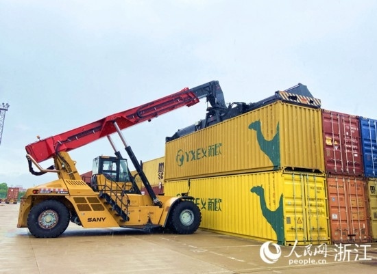 來到義烏鐵路口岸,往來車輛川流不息。繁忙運(yùn)作的堆場內(nèi),義烏市陸港鐵路口岸發(fā)展有限公司工作人員何江橋正操作一臺碩大的集裝箱正面吊,將一個個海關(guān)查驗后的集裝箱送至龍門吊下,等待裝上即將發(fā)車的“義新歐”中歐班列。
