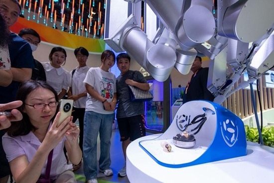9月2日,在服務貿(mào)易及服務業(yè)擴大開放成就展上,手術機器人吸引了眾多觀眾駐足。人民網(wǎng)記者 翁奇羽攝