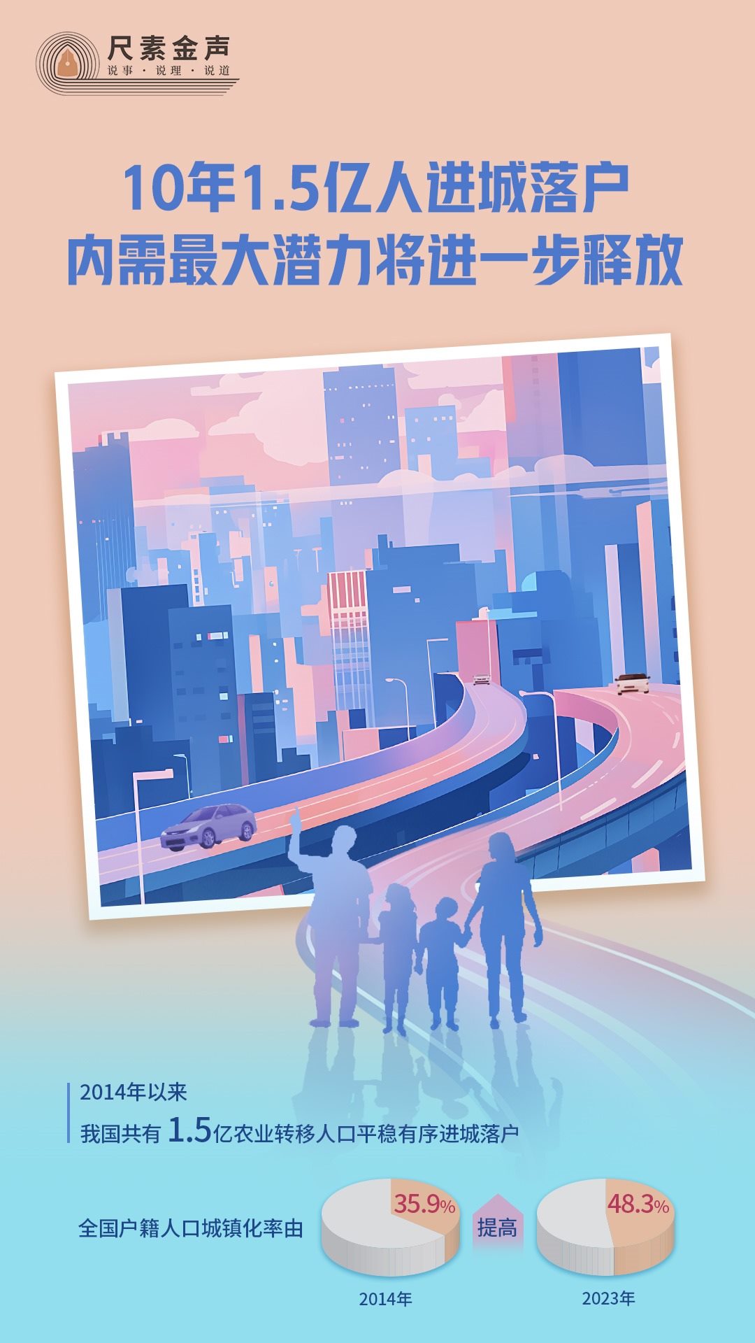 他鄉(xiāng)成故鄉(xiāng),許海麗的故事是一個縮影。數(shù)據(jù)顯示,2014年以來,我國共有1.5億農(nóng)業(yè)轉(zhuǎn)移人口平穩(wěn)有序進城落戶,全國戶籍人口城鎮(zhèn)化率由2014年的35.9%提高到2023年的48.3%。