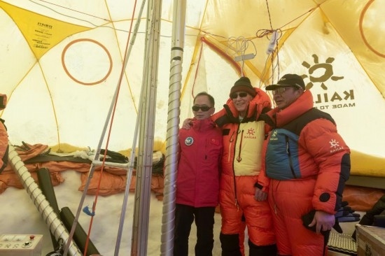 9月12日,美國科學(xué)院院士、中國科學(xué)院外籍院士湯普森和中國科學(xué)院院士、第二次青藏科考隊(duì)隊(duì)長姚檀棟一起,搭乘直升飛機(jī)抵達(dá)海拔6100米的普若崗日冰原10號冰川冰穹C作業(yè)點(diǎn)。在這里,中國科學(xué)院青藏高原研究所副所長徐柏青率領(lǐng)的第二次青藏科考隊(duì)普若崗日冰原冰芯鉆取與冰面過程科考小組正在進(jìn)行深冰芯的鉆取。