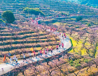 比如,“賞花+體育”?!氨寂苜F陽 永樂桃跑”2025年第七屆南明·永樂桃花跑近日在貴州省貴陽市南明區(qū)永樂鄉(xiāng)開跑。4200余名跑者與140多組家庭,在十里桃林間揮灑汗水,既鍛煉身體,又沿途賞花,可謂一舉兩得。