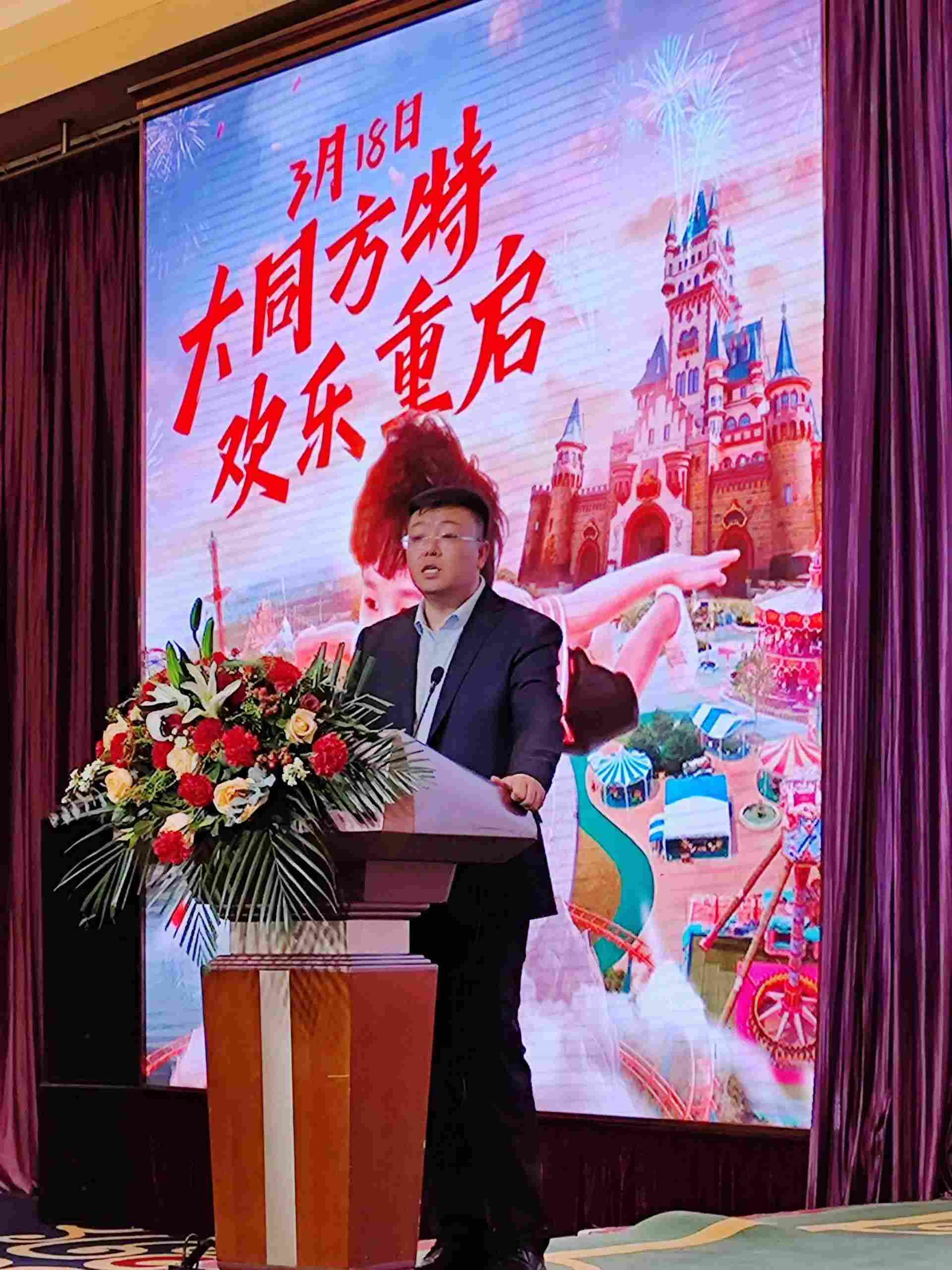 3月10日,大同方特歡樂世界“2023新起點(diǎn),攜手方特,再創(chuàng)輝煌”市場推介會(huì)于內(nèi)蒙古自治區(qū)呼和浩特市成功舉辦。會(huì)上,大同方特相關(guān)負(fù)責(zé)人向呼和浩特市相關(guān)旅游單位和新聞媒體等百余位代表全方位展示了園區(qū)運(yùn)營情況,并對2023年發(fā)展方向、全年活動(dòng)、園區(qū)項(xiàng)目等內(nèi)容進(jìn)行了詳細(xì)的介紹。