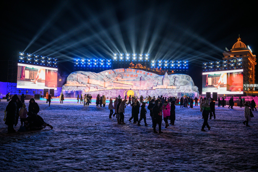 據(jù)了解,本屆冰雪節(jié)打造的《冰雪芳華》主題樂園占地12萬余平方米,以“歲月回響·口岸記憶·共赴未來”為脈絡(luò),串聯(lián)六大篇章完整復(fù)刻滿洲里從邊陲驛站到國際口岸的百年變遷。園區(qū)主雕塑“冰雪絲路·三國同心”與主舞臺(tái)“三國同心·冰雪同夢”融合三國經(jīng)典建筑元素,成為文化互鑒的視覺核心。十余項(xiàng)娛樂項(xiàng)目免費(fèi)開放,14處商品銷售及餐飲業(yè)態(tài)暖心上線,全方位滿足全齡段游客游玩需求。