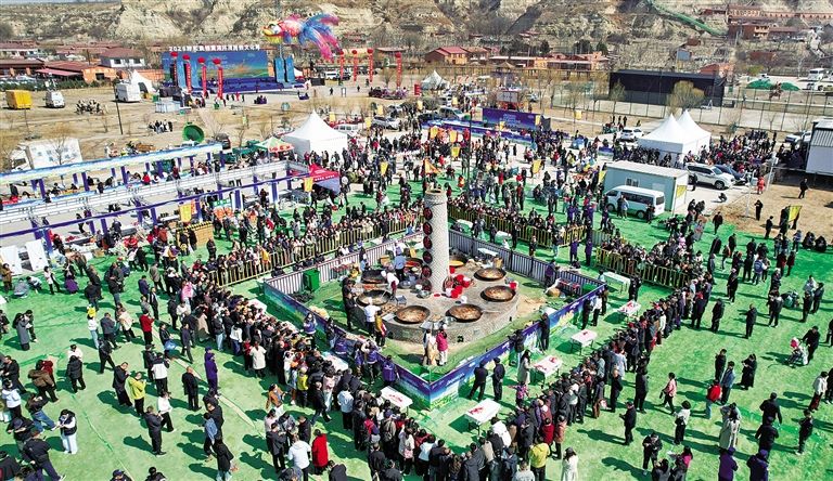 “尋味托縣·萬人嘗鮮”非遺燉魚爭(zhēng)霸賽現(xiàn)場(chǎng),本地廚師選用托克托縣辣椒、小茴香等調(diào)料,慢火燉煮開河鯉魚。非遺展示區(qū)內(nèi),剪紙、面塑、刺繡等非遺代表性傳承人現(xiàn)場(chǎng)教學(xué),紅辣椒、小香米、果丹皮等特色農(nóng)產(chǎn)品同步展銷,網(wǎng)紅直播帶貨推動(dòng)“非遺+農(nóng)產(chǎn)”出圈。耕稼陶漁景區(qū)的篝火晚會(huì)與無人機(jī)表演,點(diǎn)亮了黃河之夜。