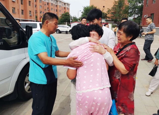 當一行人下車后看到,迎接他們的李曉霞親人和包頭社會救助站的工作人員時都很激動,李曉霞與家人團聚相擁而泣時,在場的每一個人都感動不已。
