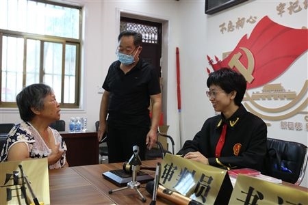 溫縣法院法官與調(diào)解員聯(lián)合調(diào)解贍養(yǎng)糾紛。