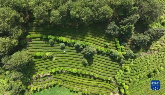 4月15日拍攝的貴州省開(kāi)陽(yáng)縣南龍鄉(xiāng)田坎村的茶園(無(wú)人機(jī)照片)。