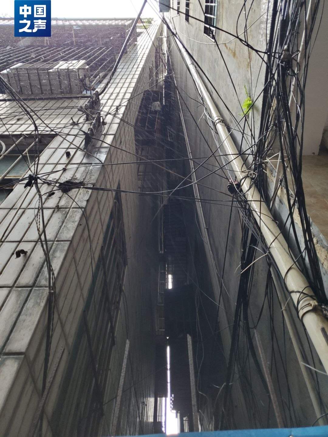 △危樓傾斜嚴(yán)重,放礦泉水會(huì)滾動(dòng)。