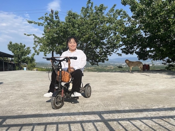 雖然每天需要在輪椅上生活,但李丹并不受限于此。因身體原因無法到學(xué)校讀書,她就在家自學(xué),每天翻字典,一個字一個字地去記;銷售有問題,12歲時她就讓父親把自己帶到菜市場,用真誠的微笑和陌生人拉近距離,打開銷路;為給桃子設(shè)計獨一無二的包裝,與漢濱區(qū)殘聯(lián)溝通后,她騎著電動輪椅坐高鐵前往西安學(xué)習(xí)攝影和畫畫;山路陡峭,輪椅不方便上下山,她就去考了C5駕照,免去父親背她走路的辛勞。面對疾病的糾纏,李丹始終保持積極的心態(tài):“我希望自己的人生是不斷突破的。”