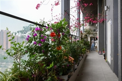 這棟“三角梅大樓”一共有32層(躍層),兩個(gè)單元,每層8戶,一共240戶人家。三角梅種植在每一層的公共空間長廊上,每家每戶前都有三角梅種植點(diǎn)。久而久之,每家每戶也在三角梅的基礎(chǔ)上,按照個(gè)人愛好興趣種植了更多的綠植、瓜果、蔬菜等,成為小區(qū)一景。
