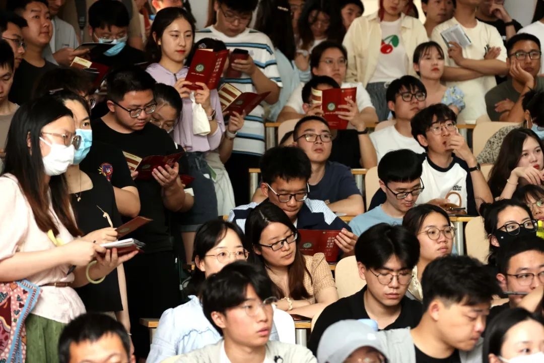 活動(dòng)中,盡管教室內(nèi)溫度很高,可沒(méi)有一名學(xué)生中途離開(kāi)。一名站在過(guò)道處聽(tīng)講的學(xué)生差點(diǎn)暈倒,工作人員把他扶到空調(diào)處休息了一會(huì),感覺(jué)好點(diǎn)后,他又繼續(xù)站在人群中聽(tīng)講。