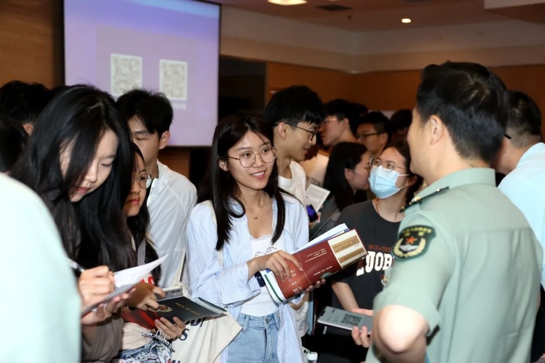 來(lái)自陸軍工程大學(xué)政工系的任佳瑩走上講臺(tái),為學(xué)生們現(xiàn)身說(shuō)法,詳細(xì)分享了自己從一名普通文職人員成長(zhǎng)為教授的經(jīng)歷,贏得學(xué)生們羨慕的目光。該校物理學(xué)院聲學(xué)專業(yè)的碩士研究生梁詩(shī)琪說(shuō):“真的很期盼早日成為軍隊(duì)文職的一員。”